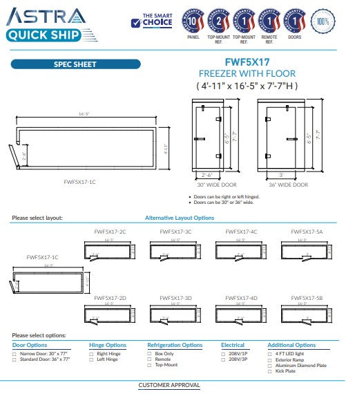 Astra 5 x 17 Walk-In Freezer with Floor FWF5X17