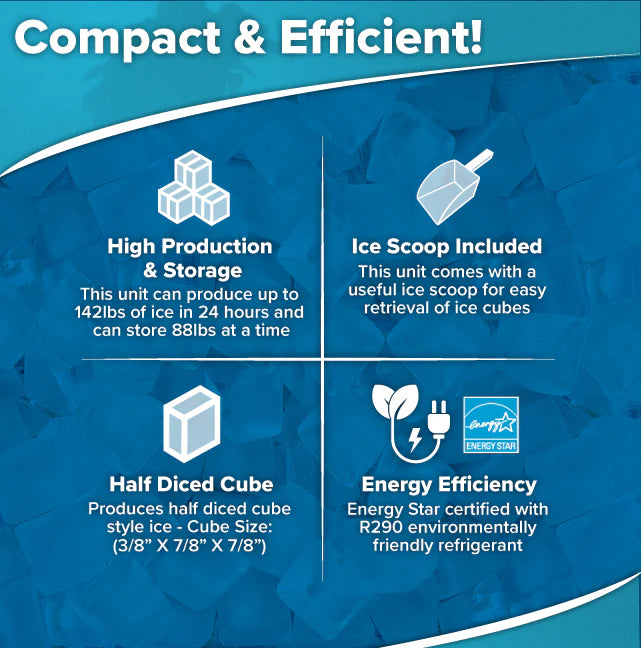 - Up to 142 lb. production ice machine